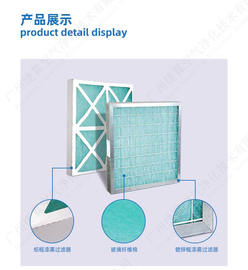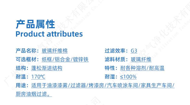 - 玻纖過濾棉的迎風(fēng)面為綠色,出風(fēng)面為白色。