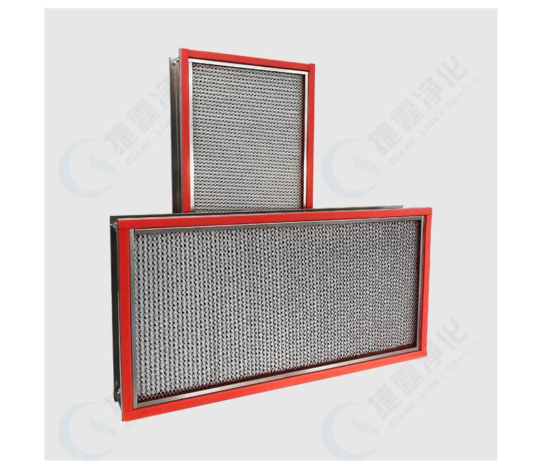 - 以超細玻璃纖維濾紙為濾料,鋁箔為分隔物,進口耐高溫密封膠密封,外框采用鍍鋅框或304不銹鋼框,