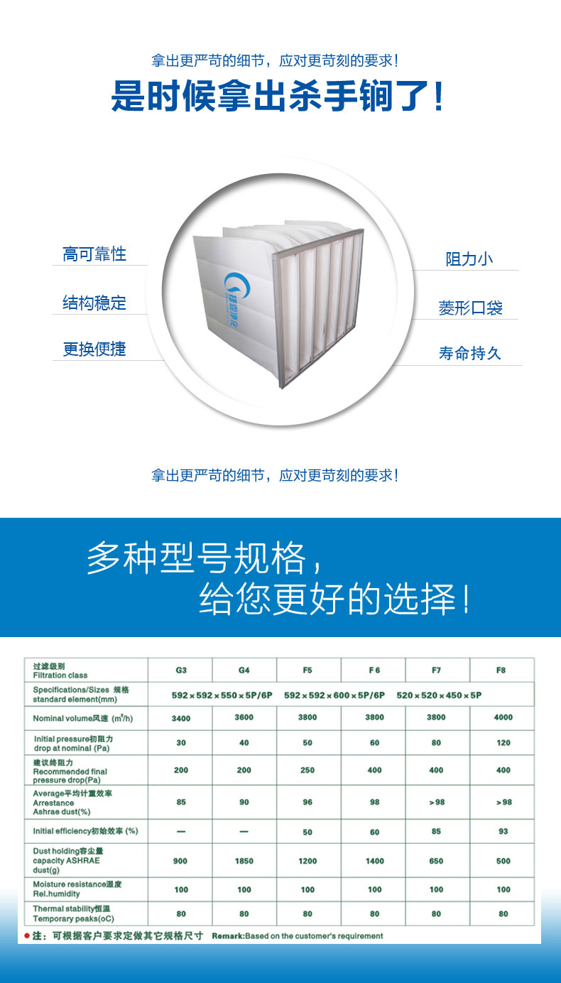 - 內(nèi)有菱形小口袋,既分流、均流、又能保證袋型,降低能耗,充分利用濾料
